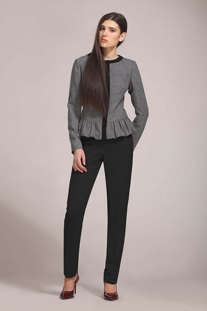 Зауженные к низу брюки. Боковые карманы. Разрезы в боковых швах.