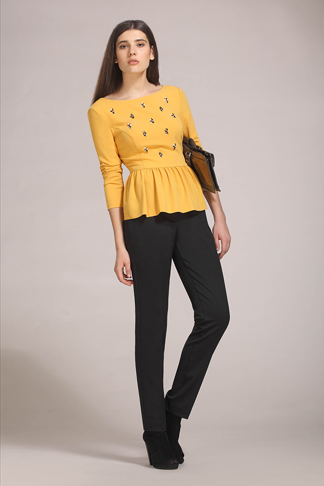 Зауженные к низу брюки. Боковые карманы.