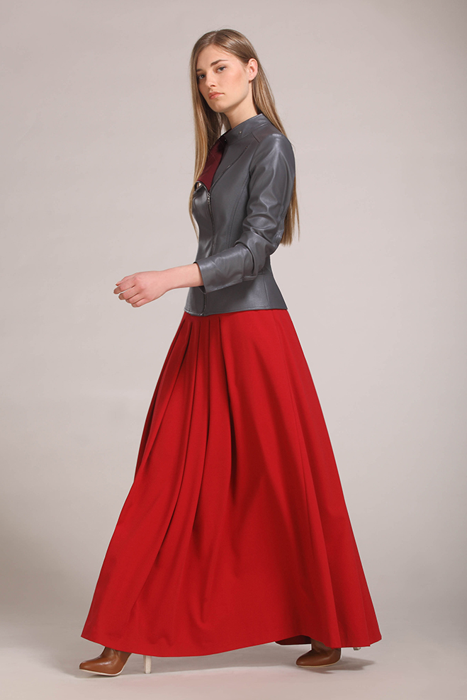 Длинная расширенная юбка со складками. Кожаный ремешок. Трикотажная подкладка.